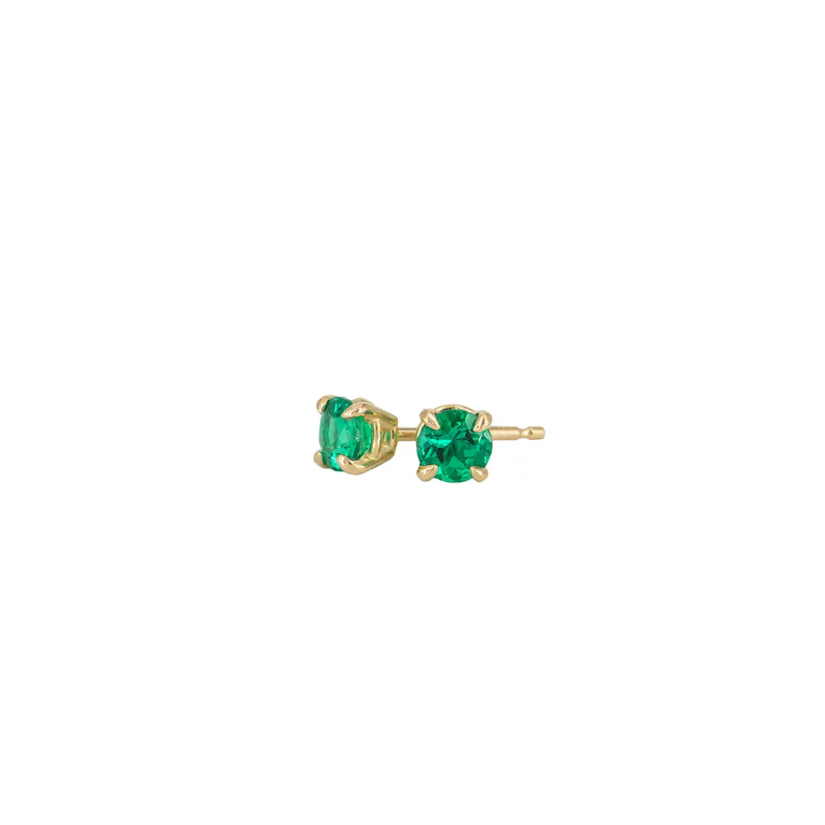 Details:Emeralds, 4mm, 0.40 carat total weight4-prong basket setting18k yellow goldFriction backs