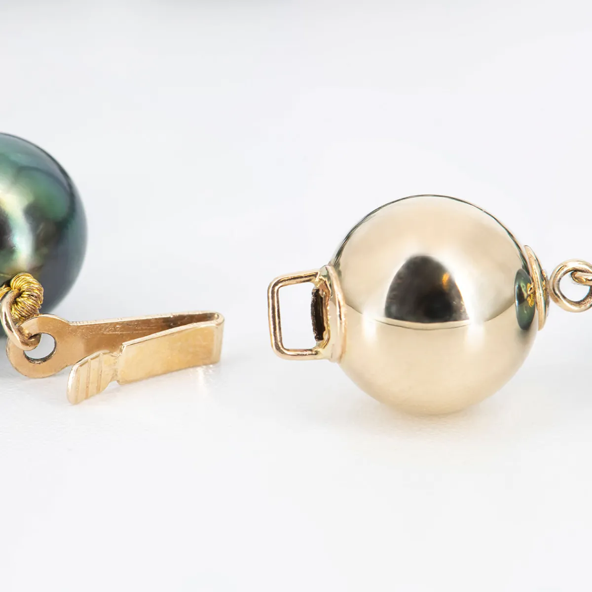 - 14k yellow gold pearl clasp closure with built in safety (see photo)