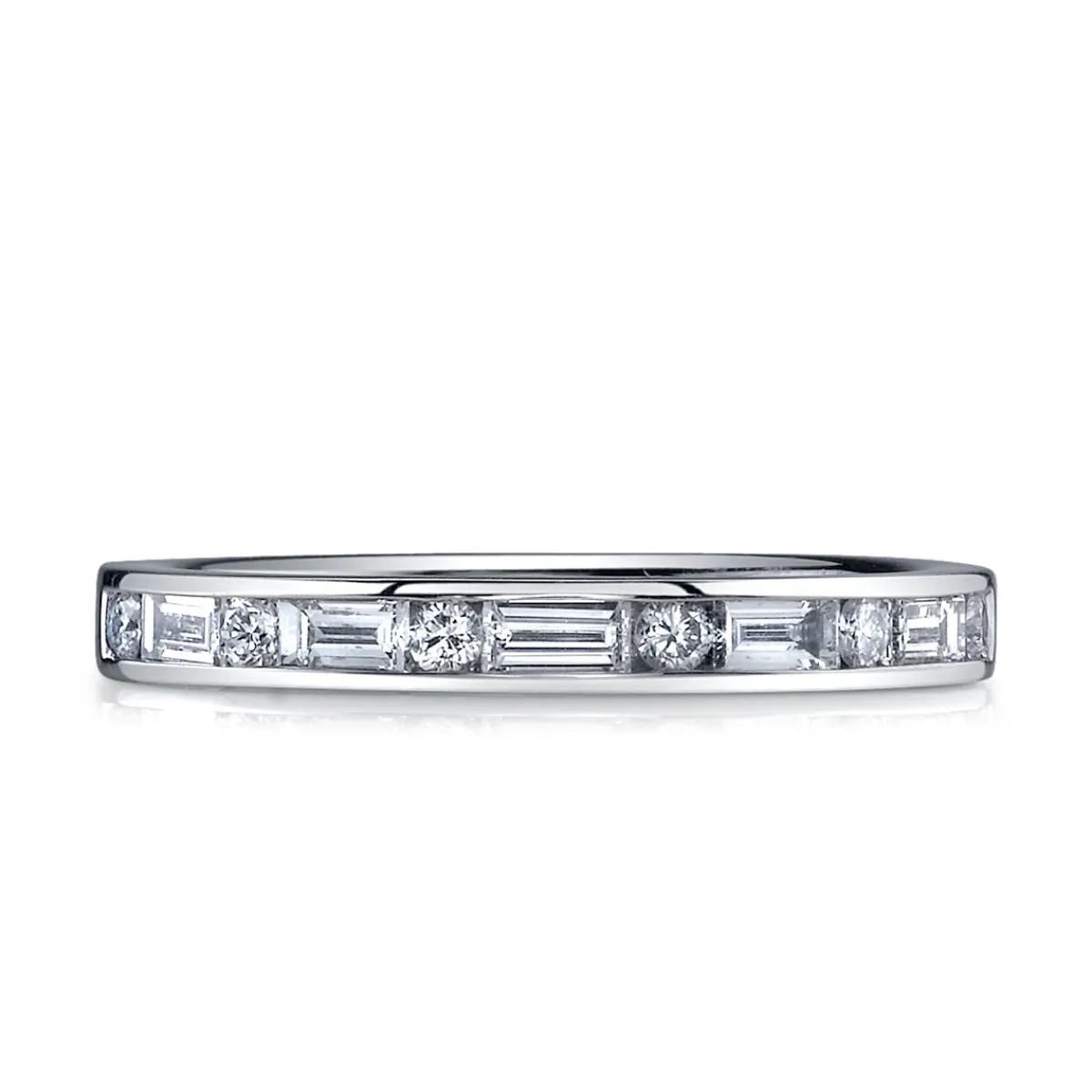 Details:5 baguette Diamonds, 0.29 carat total weight6 round Diamonds, 0.12 carat total weightChannel set, half way arou…