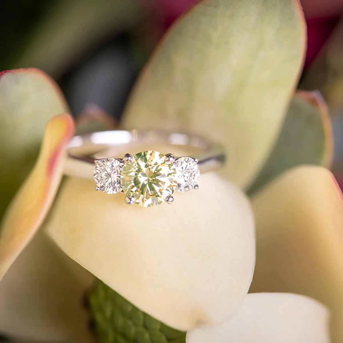 - Natural Fancy Yellow Diamond center, .84 Carats. GIA report #6207723859