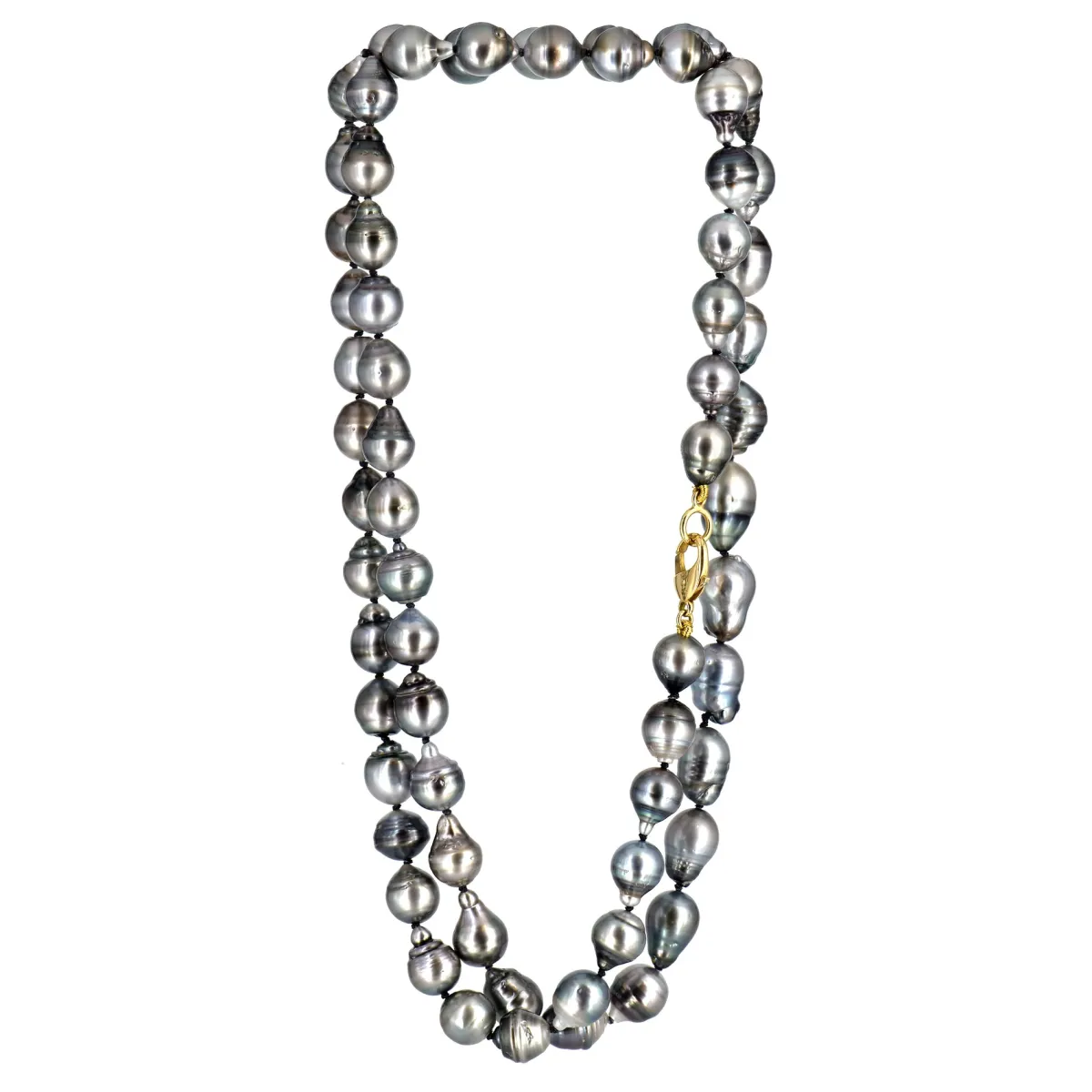 Details:18k Yellow Gold ClaspBaroque Tahitian Pearls, ~12+ mmMeasurements: 43″ in length