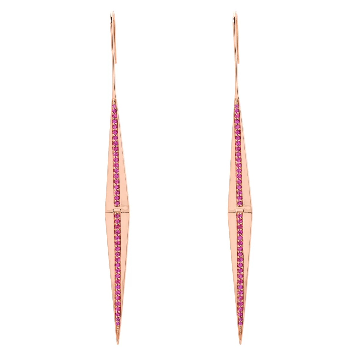 Details:18k Rose GoldPink sapphire paveEarrings have about a 3” drop