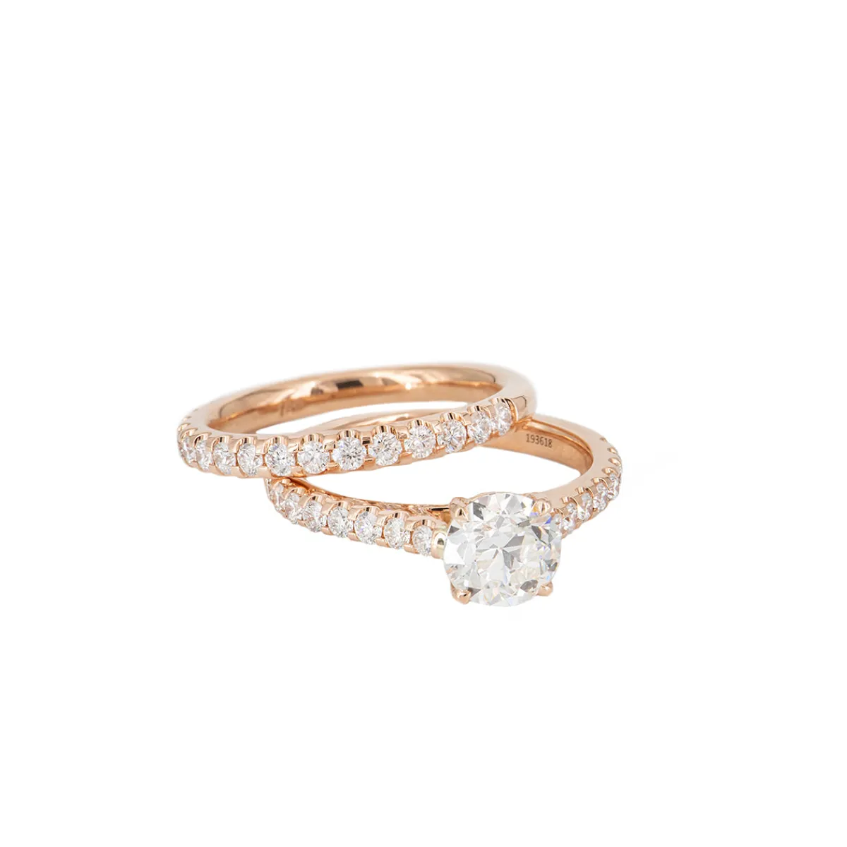 - Engagement: 1.01 carat old European cut center diamond (H / VS2) with 0.25 carat total weight in additional diamonds