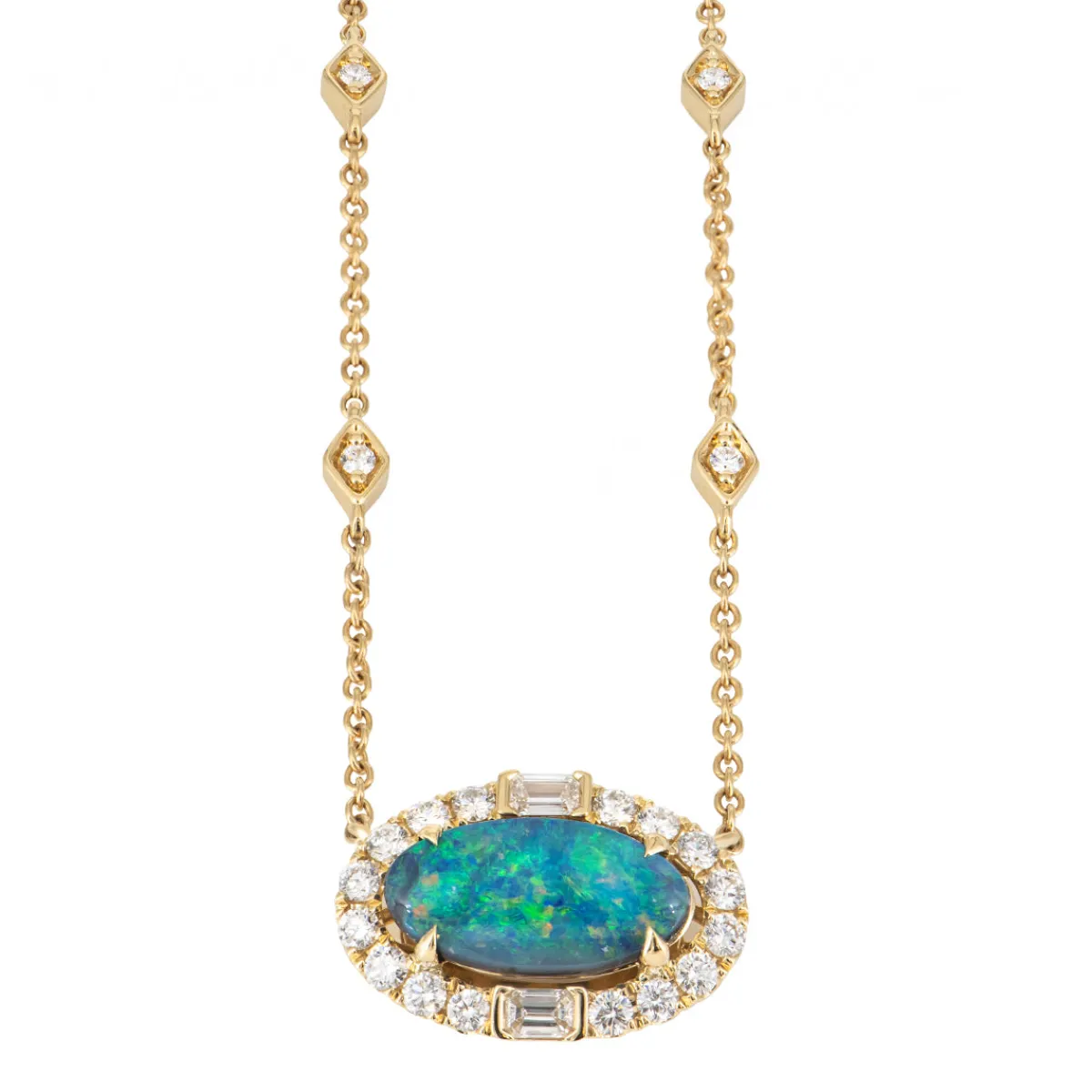 Details:One-of-a-kind, hand made, Alchemy designBlack Opal, 2.13 caratsDiamonds, (2) emerald-cut & (24) round brilli…