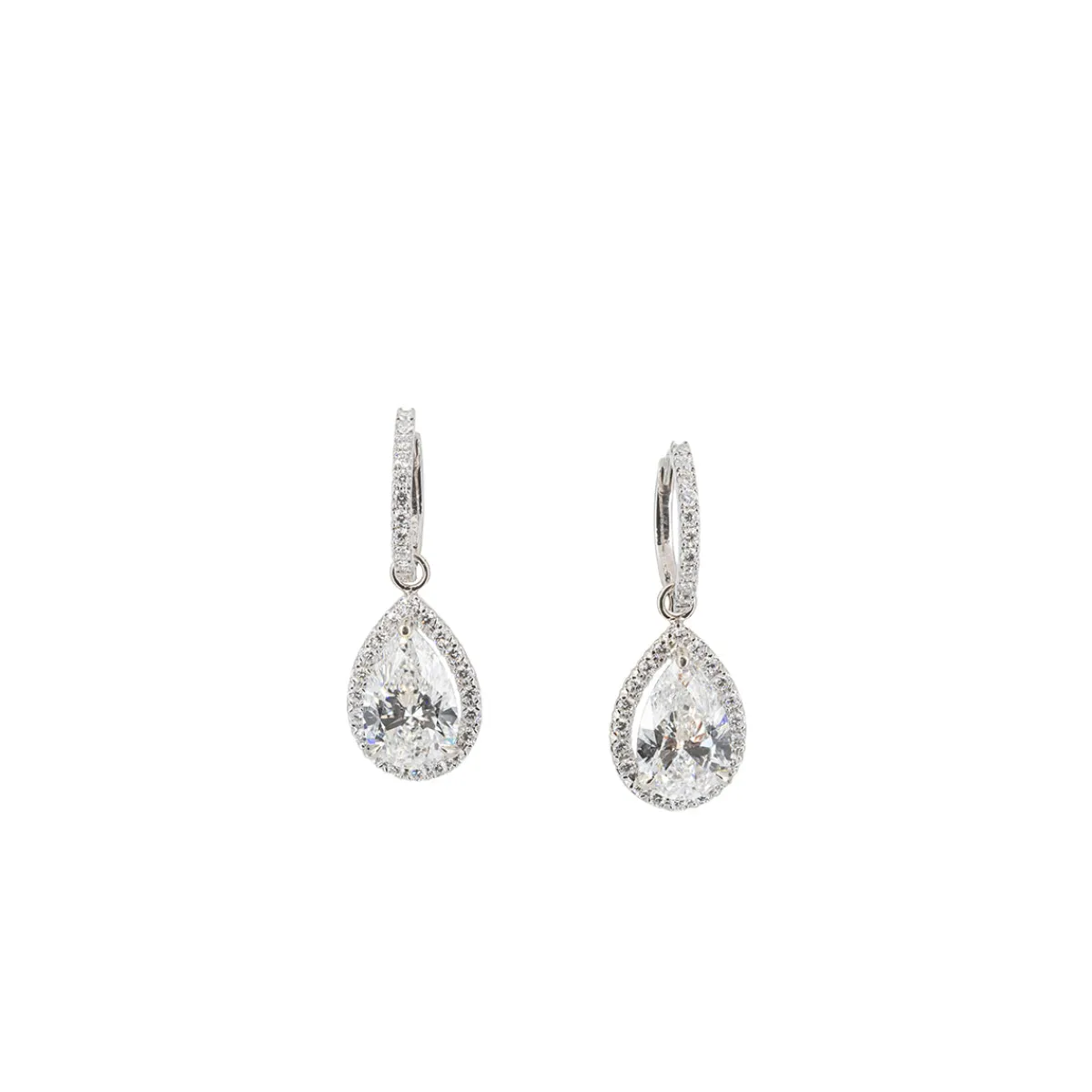 - Featuring (2) lab grown diamonds, pear shaped, 5.13 carat total weight, F / VS1-VVS2