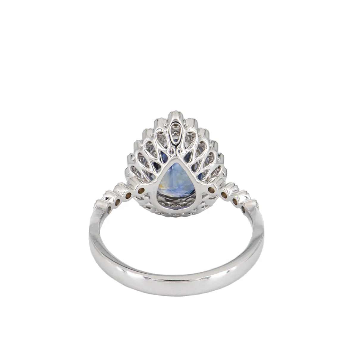 Details:Blue Sapphire, natural, pear-cut, 3.64 carats26 round brilliant diamonds, 0.13 carat total weight18k white goldR…
