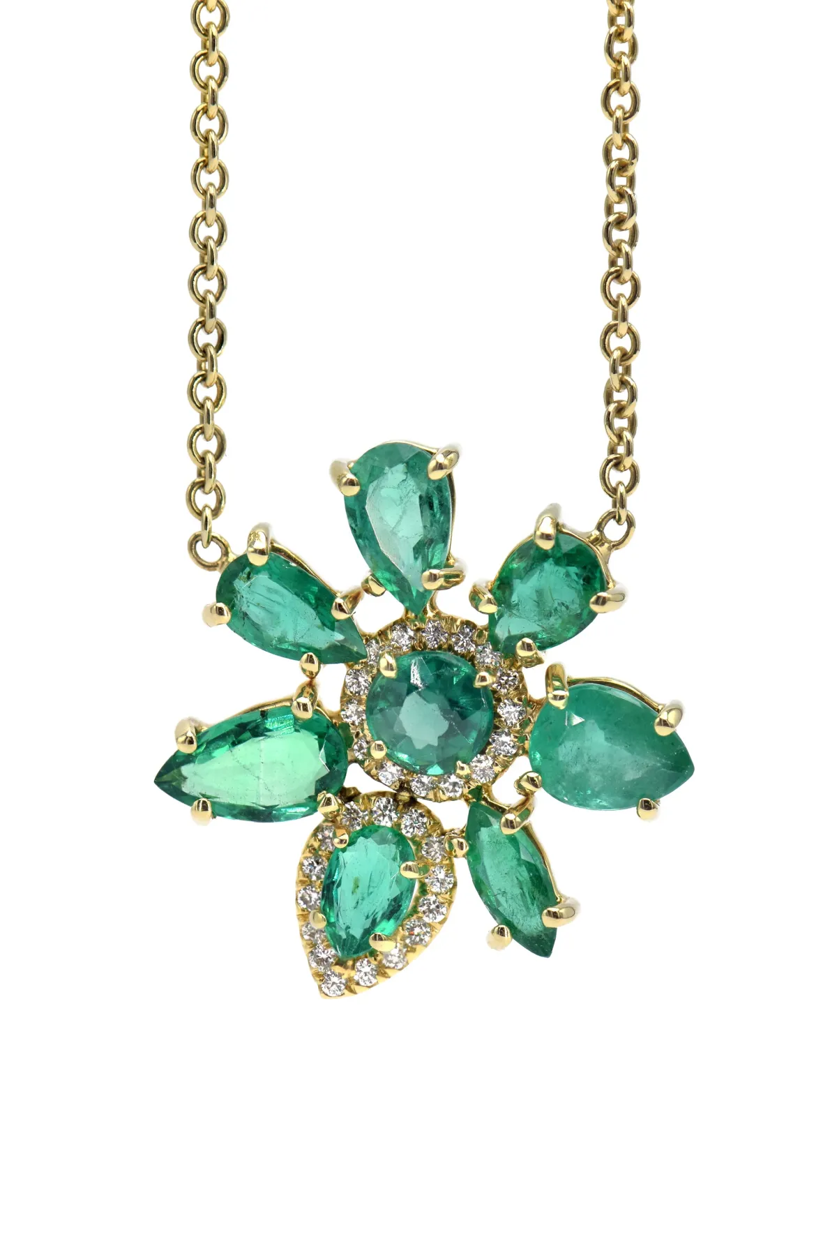 Lauren K Emerald & Diamond Flower Necklace